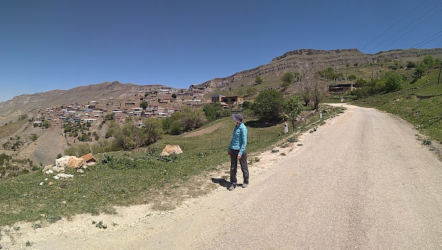 Там купили помидоры, лепешку еще горячую и сыр домашний, правда соленый ощутимо и пошли через дамбу в В.Ишкарты. В последнем тенечке на скамеечке Галя мозоли залепила и пошли в 9:35 варится потихоньку на солнышке :) Постепенно набираем высоту, любуемся видами, даже видно барханы Сарыкум, жарко, но ветер немного спасает. На перевале в 12 пообедали в кустах, отдохнули и пошли дальше уже вниз в 12:45. Часам к 14 спустились в село, зашли в магазин, взяли две 1,5л воды, халву, колу и мохито - выпили в тени магазина. Дядечка подсказал родник дальше, набрали там воды 2л и 1л и пошли уже вверх. Пошли не по основной дороге, а "напрямик" тоже по дороге, прошли каменоломню, там нам предлагали чай :) можно было по основной дороге поймать машину и сэкономить км. 3, но зато посмотрели красивые виды какого-то ущелья. Скоро крутоватый спуск к реке, много мусора и река сухая, Галя мозоли проверила свои, поделилась запасами воды со мной и вверх пошли. Осталось 2,8 км. и нас подобрали парни, ехали смотреть место под киоски для туристов на смотровой площадке, подсказали про беседку чуть назад. В 16:20 поднялись. Ветер прохладный здесь дует. Рюкзаки оставили у дороги, поднялись на смотровую, дошли до типа официальной смотровой, увидели где беседка, вернулись за рюкзаками и пошли к беседке. Там два дядьки с кучей еды на столе, пригласили на чай. Палатку решили рядом поставить. Они сюда привозили русских друзей родственника, т.к. они самые младшие, то остались прибираться. Попробовали урбеч домашний, который для себя делают :) Оставили нам огурцы, помидоры, две булочки, сыр домашний, конфет кучку, торт домашний, в котелок налили травяной чай вкусный - мы были в легком шоке :) Потом приехала еще компания, угостили курицей на гриле и хлебом. В итоге ужин у нас был обжираловский :) Прохладно, в пуховичках сидим. Вечером немного дожгли костер от компании и спать в 21:20.